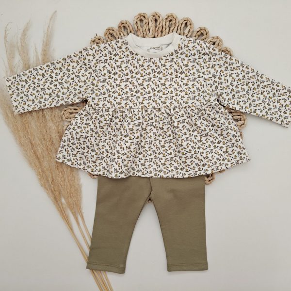 ¡Síguenos en Instagram! CONJUNTO LEGGING FLORECITAS ACEITUNA COMPOSICIÓN 100% Algodón OBSERVACIONES El tallaje de Mayoral es estándar (Consultar guía de