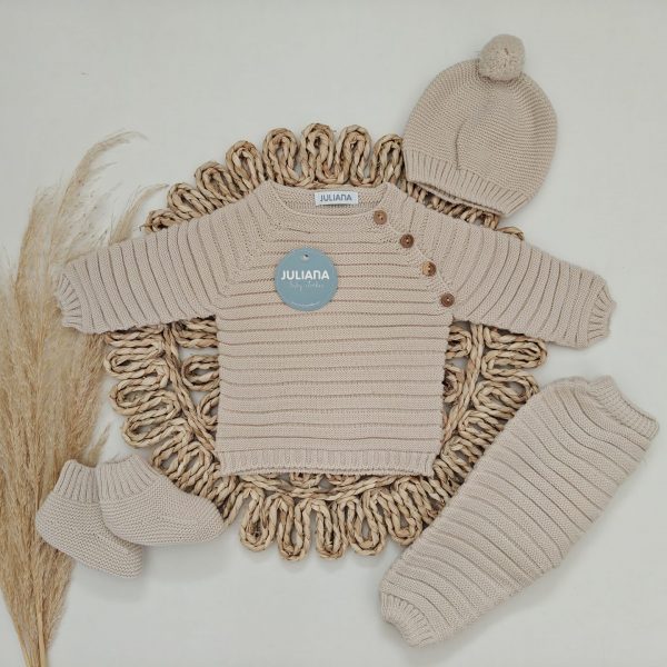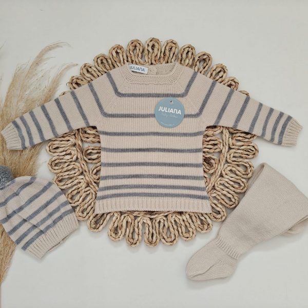 ¡Síguenos en Instagram! CONJUNTO 3P RAYADO JULIANA CREMA MARCA COMPOSICIÓN Punto: 100% Acrílico OBSERVACIÓN El tallaje de Juliana no es