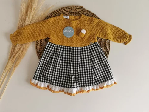 Vestido Combinado Cuadros Oro
