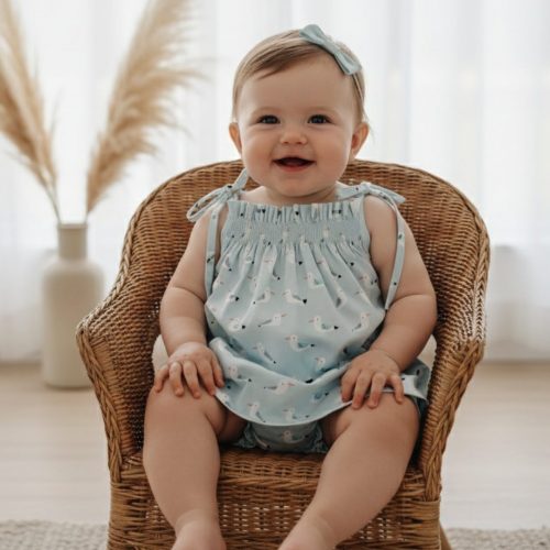 Vestido Combinado Plumeti Celeste