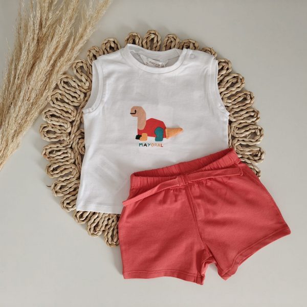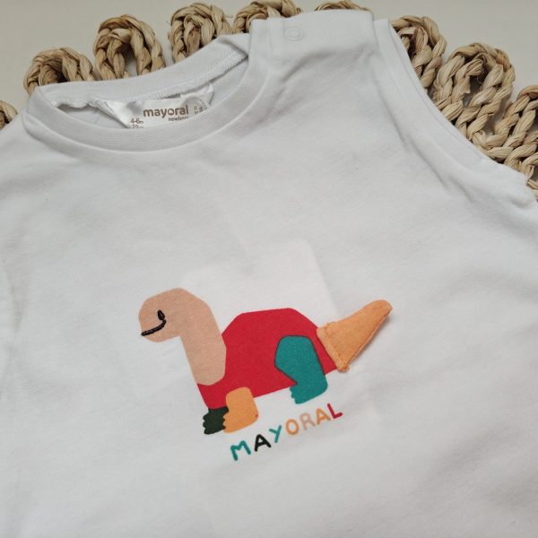¡Síguenos en Instagram! CONJUNTO TIRANTES DINOSAURIO MAYORAL MARCA COMPOSICIÓN 95% Algodón 5% Elastano OBSERVACIONES El tallaje de Mayoral es estándar