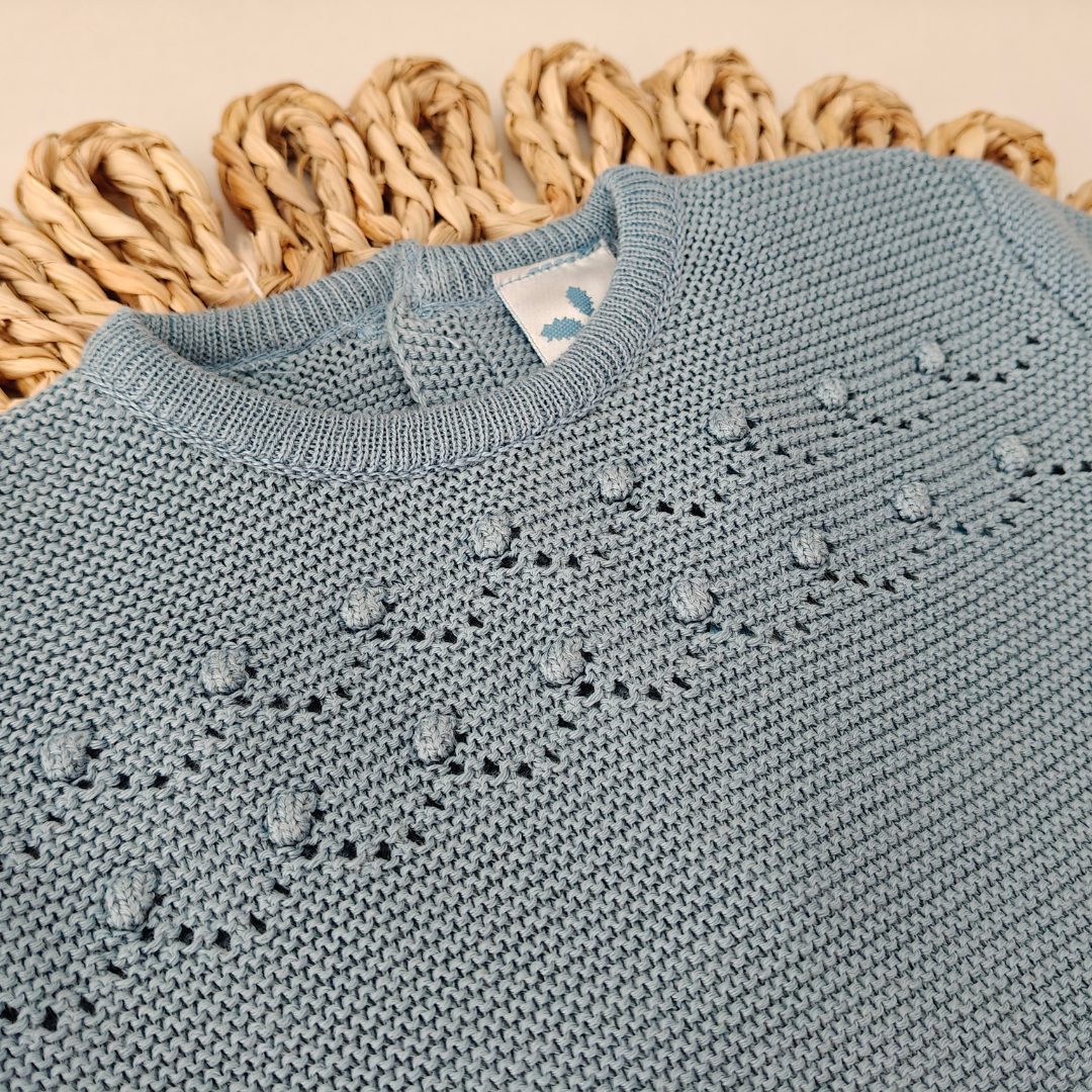 ¡Síguenos en Instagram! CONJUNTO TACHÓN CALADO CELESTE MARCA COMPOSICIÓN 50% Algodón 50% Acrílico OBSERVACIÓN El tallaje de Juliana no es