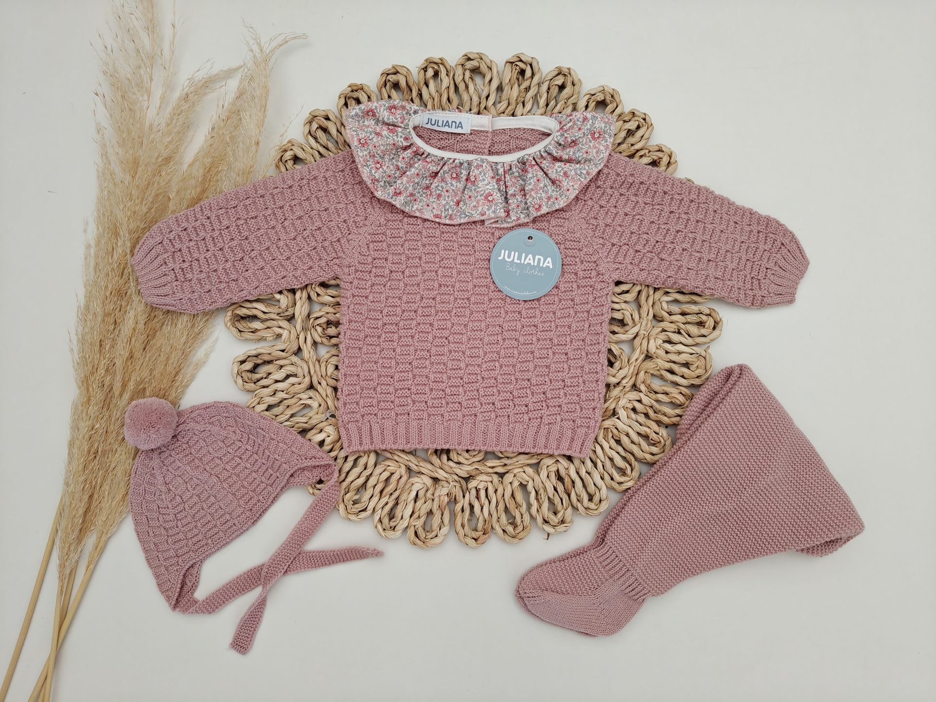 El tallaje de Juliana no es muy amplio, especialmente las tallas comprendidas entre la 0 y 12 meses, la talla 0 se recomienda para prematuros y la 1 para recién nacidos.