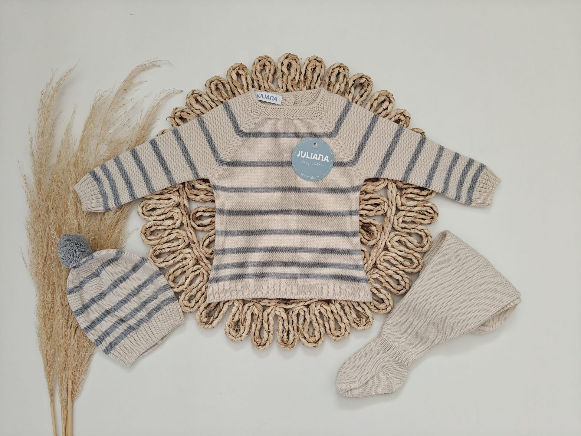 CONJUNTO 3P RAYADO JULIANA CREMA