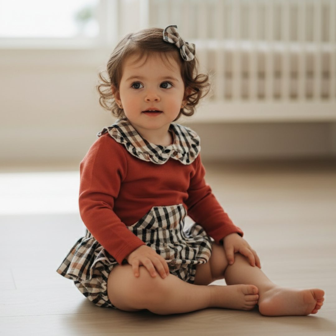 ¡Síguenos en Instagram! PELELE CUELLO VOLANTE CUADROS MARCA COMPOSICIÓN 100% Acrílico OBSERVACIONES El tallaje de Calamaro baby es estándar (Consultar