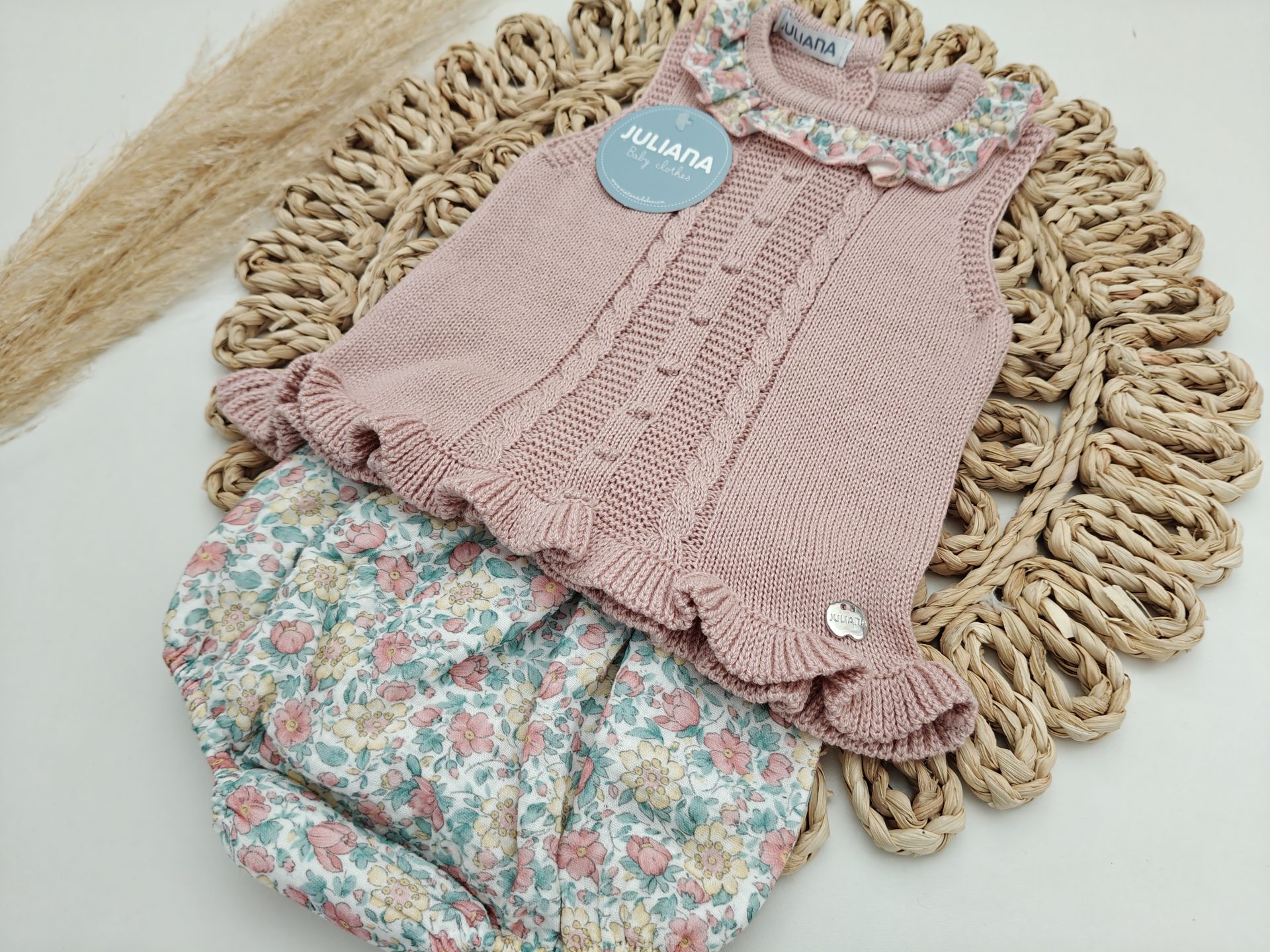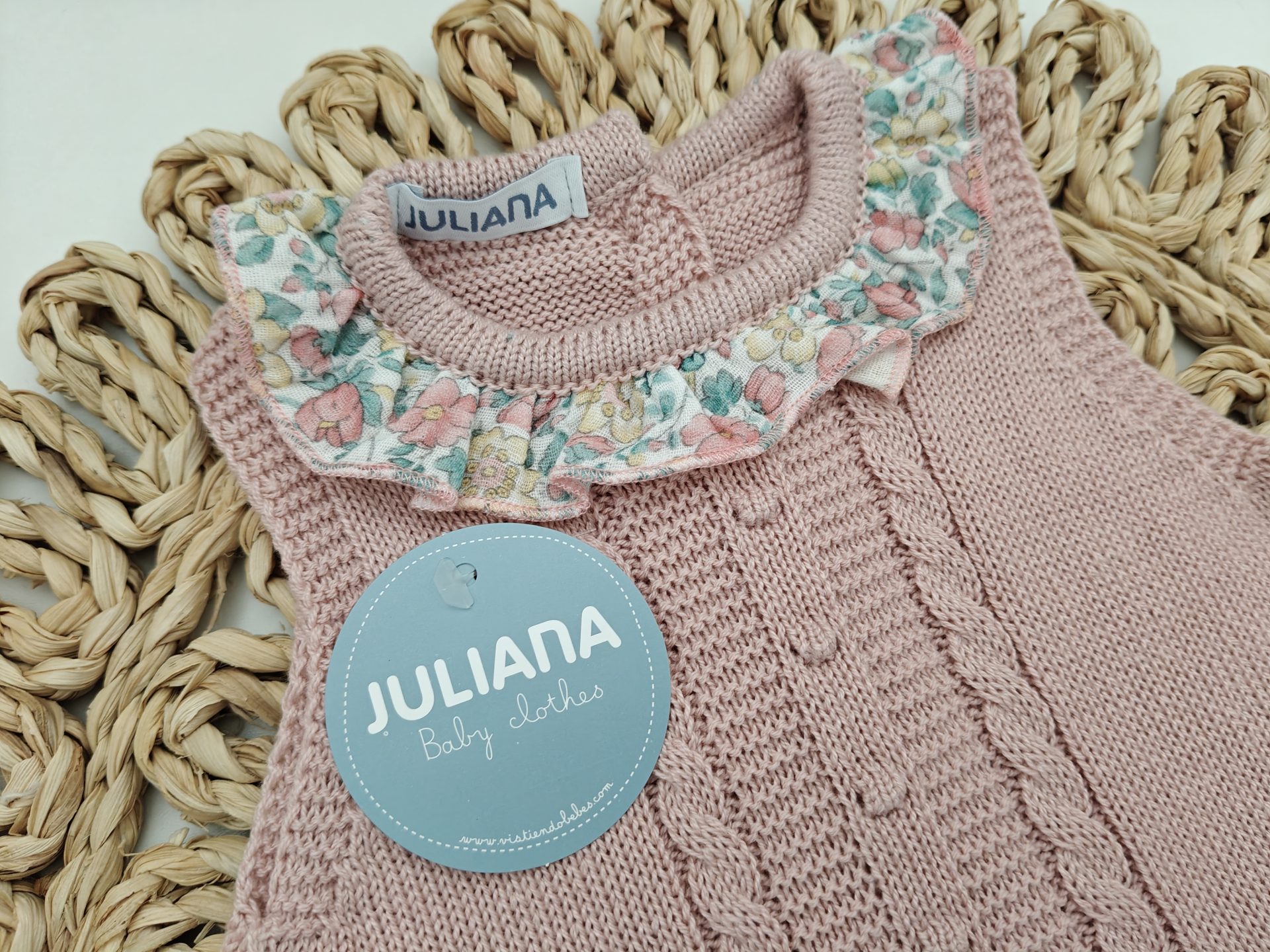 El tallaje de Juliana no es muy amplio, especialmente las tallas comprendidas entre la 0 y 12 meses, la talla 0 se recomienda para prematuros y la 1 para recién nacidos.