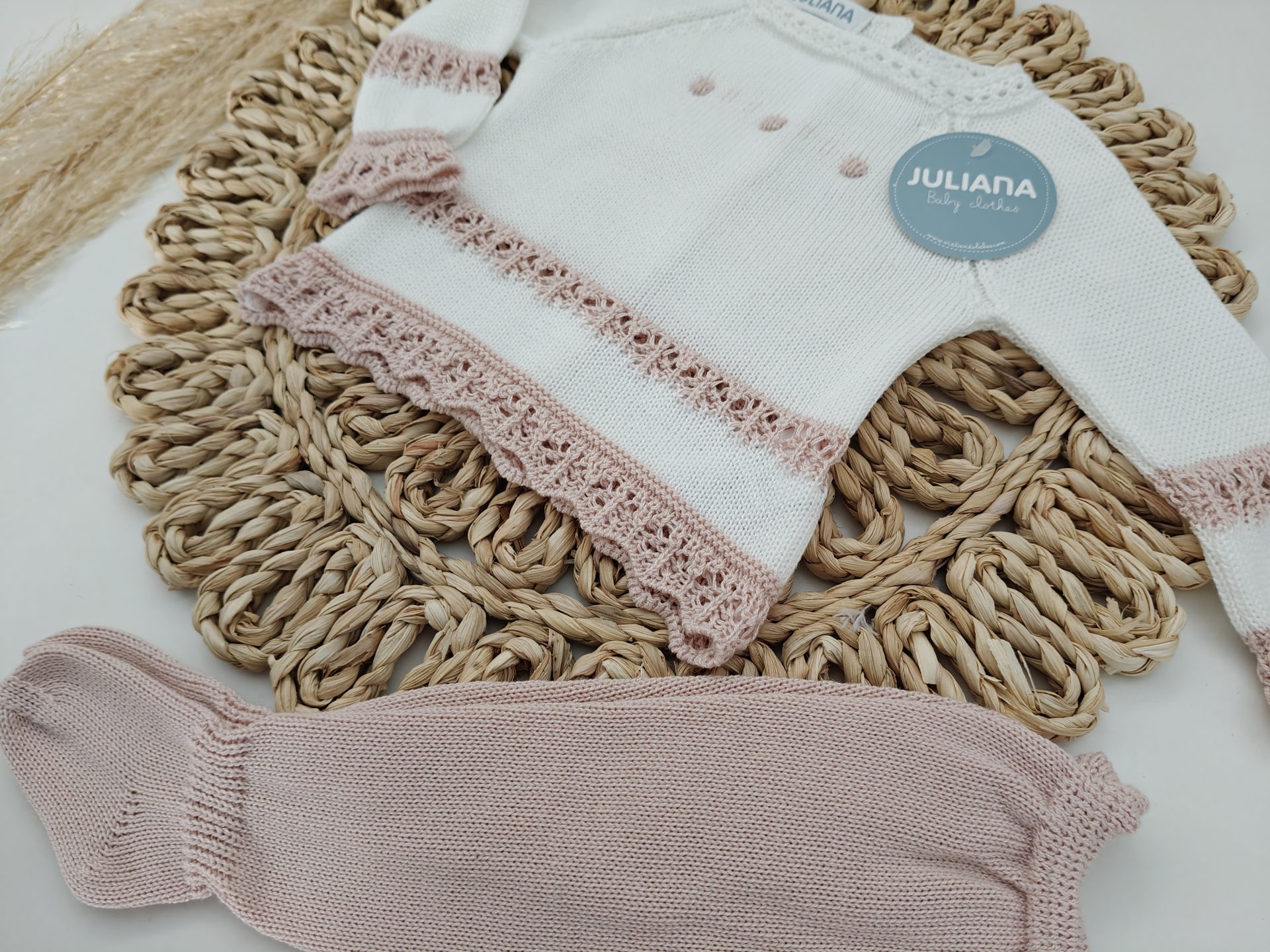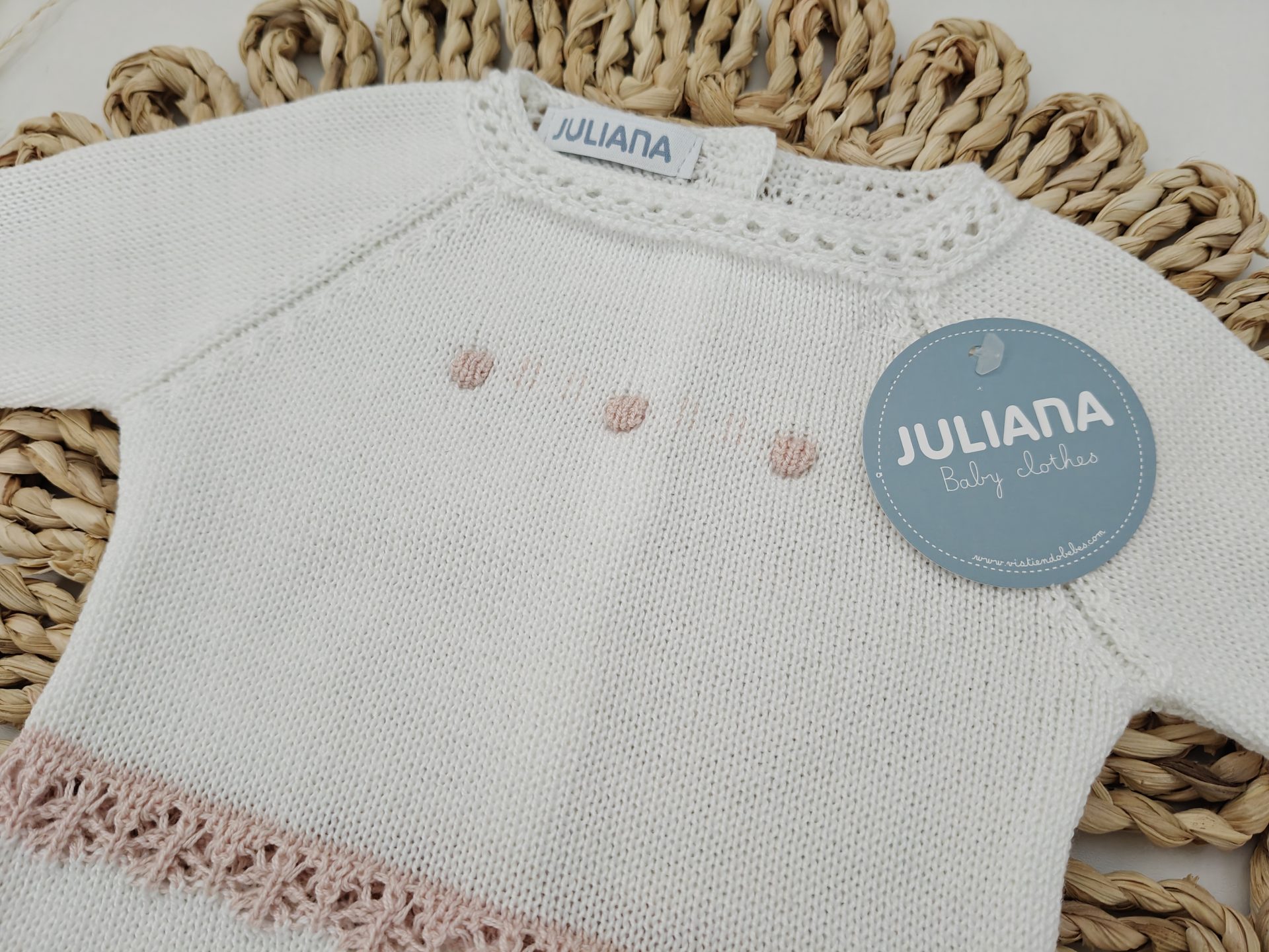 El tallaje de Juliana no es muy amplio, especialmente las tallas comprendidas entre la 0 y 12 meses, la talla 0 se recomienda para prematuros y la 1 para recién nacidos.