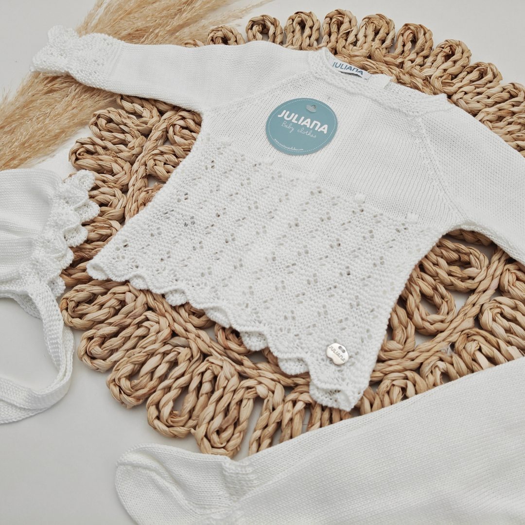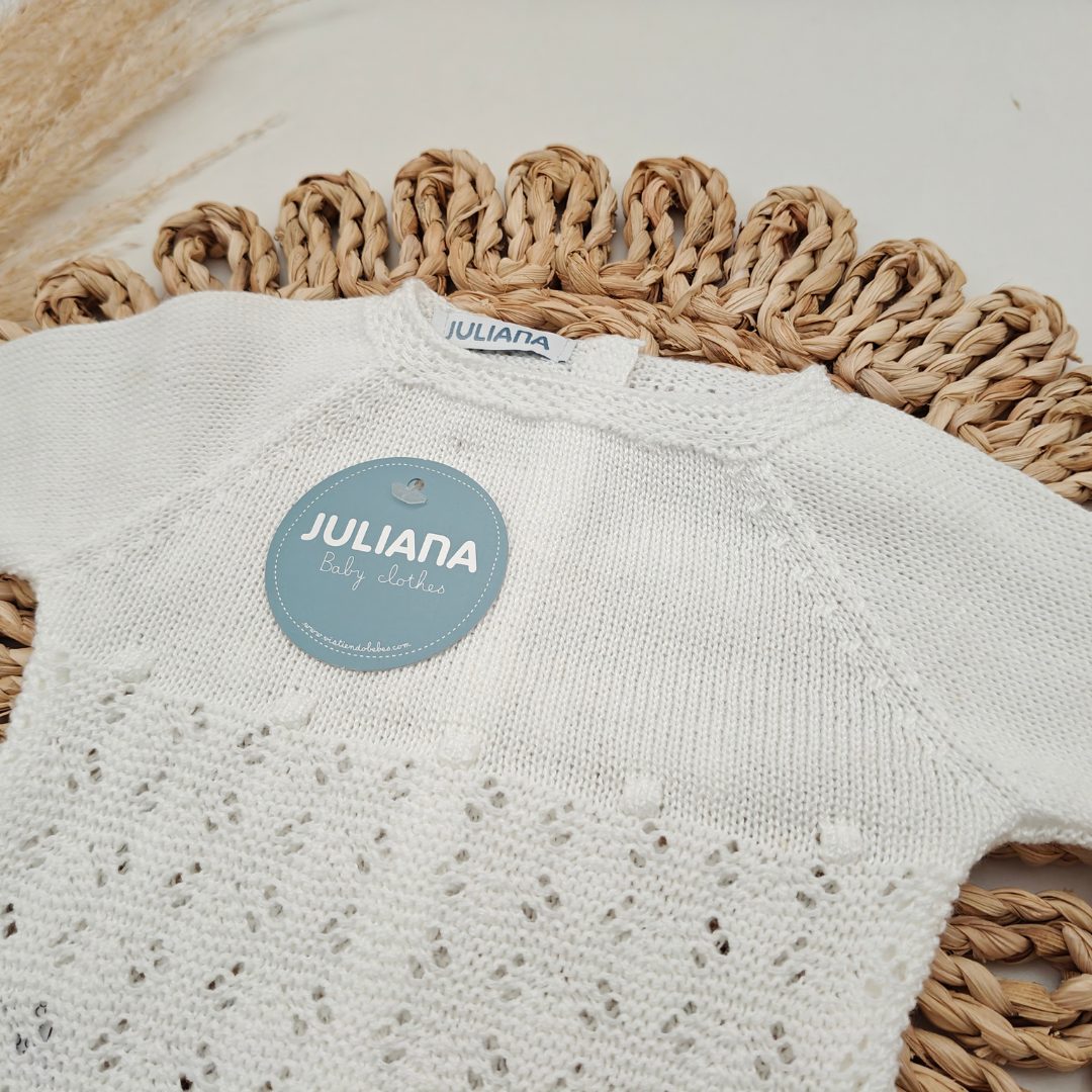 El tallaje de Juliana no es muy amplio, especialmente las tallas comprendidas entre la 0 y 12 meses, la talla 0 se recomienda para prematuros y la 1 para recién nacidos.
