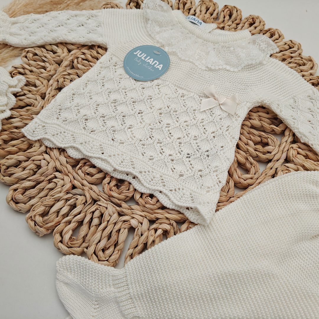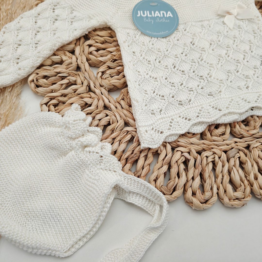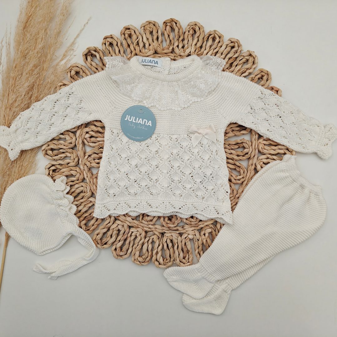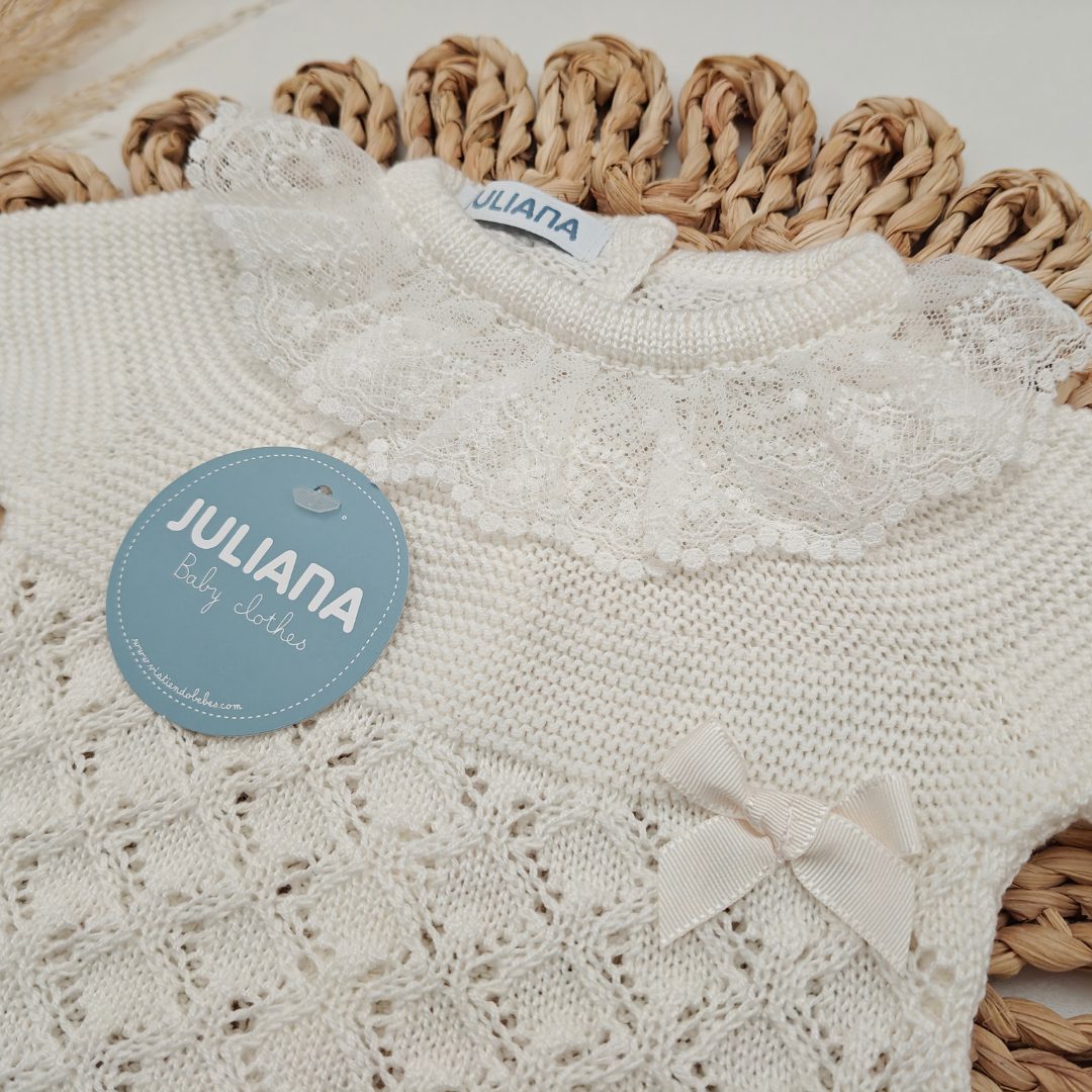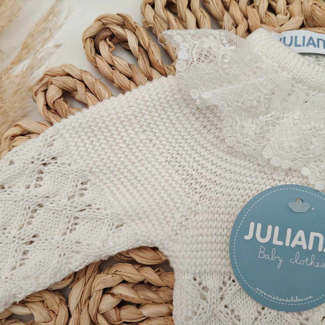 El tallaje de Juliana no es muy amplio, especialmente las tallas comprendidas entre la 0 y 12 meses, la talla 0 se recomienda para prematuros y la 1 para recién nacidos.