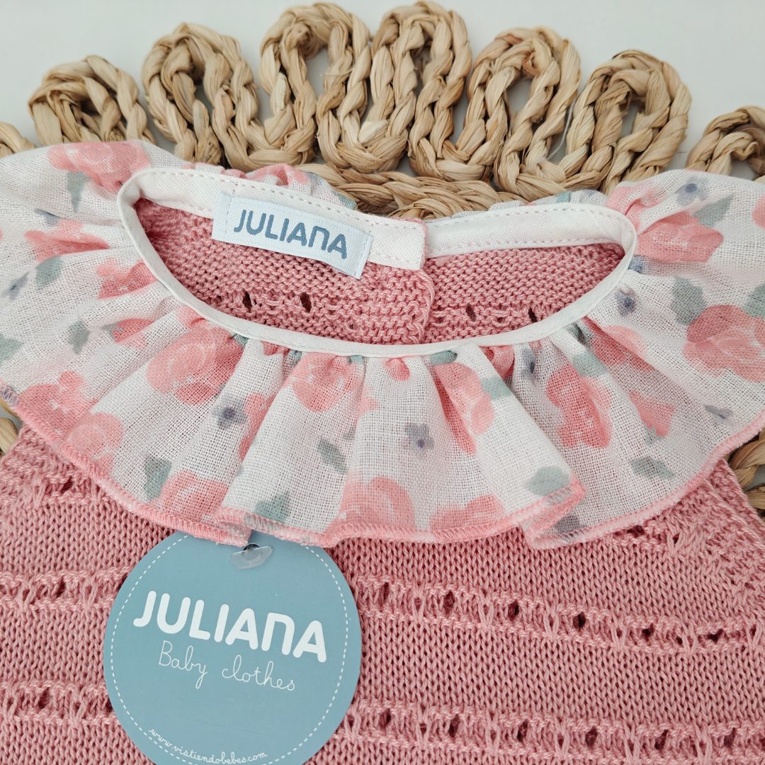 El tallaje de Juliana no es muy amplio, especialmente las tallas comprendidas entre la 0 y 12 meses, la talla 0 se recomienda para prematuros y la 1 para recién nacidos.