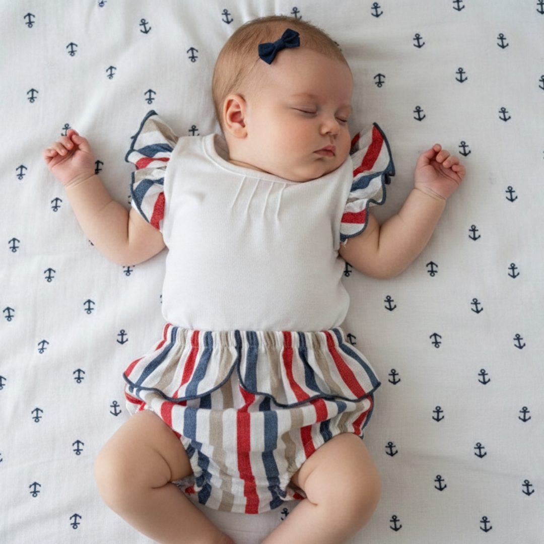 ¡Síguenos en Instagram! CONJUNTO RANITA TOPITOS MARCA COMPOSICIÓN 100% Algodón OBSERVACIONES El tallaje de Tony Bambino es estándar (Consultar guía