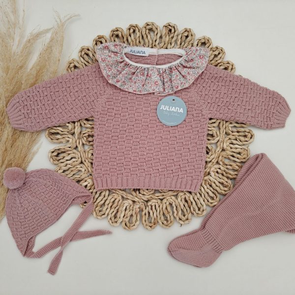 El tallaje de Juliana no es muy amplio, especialmente las tallas comprendidas entre la 0 y 12 meses, la talla 0 se recomienda para prematuros y la 1 para recién nacidos.