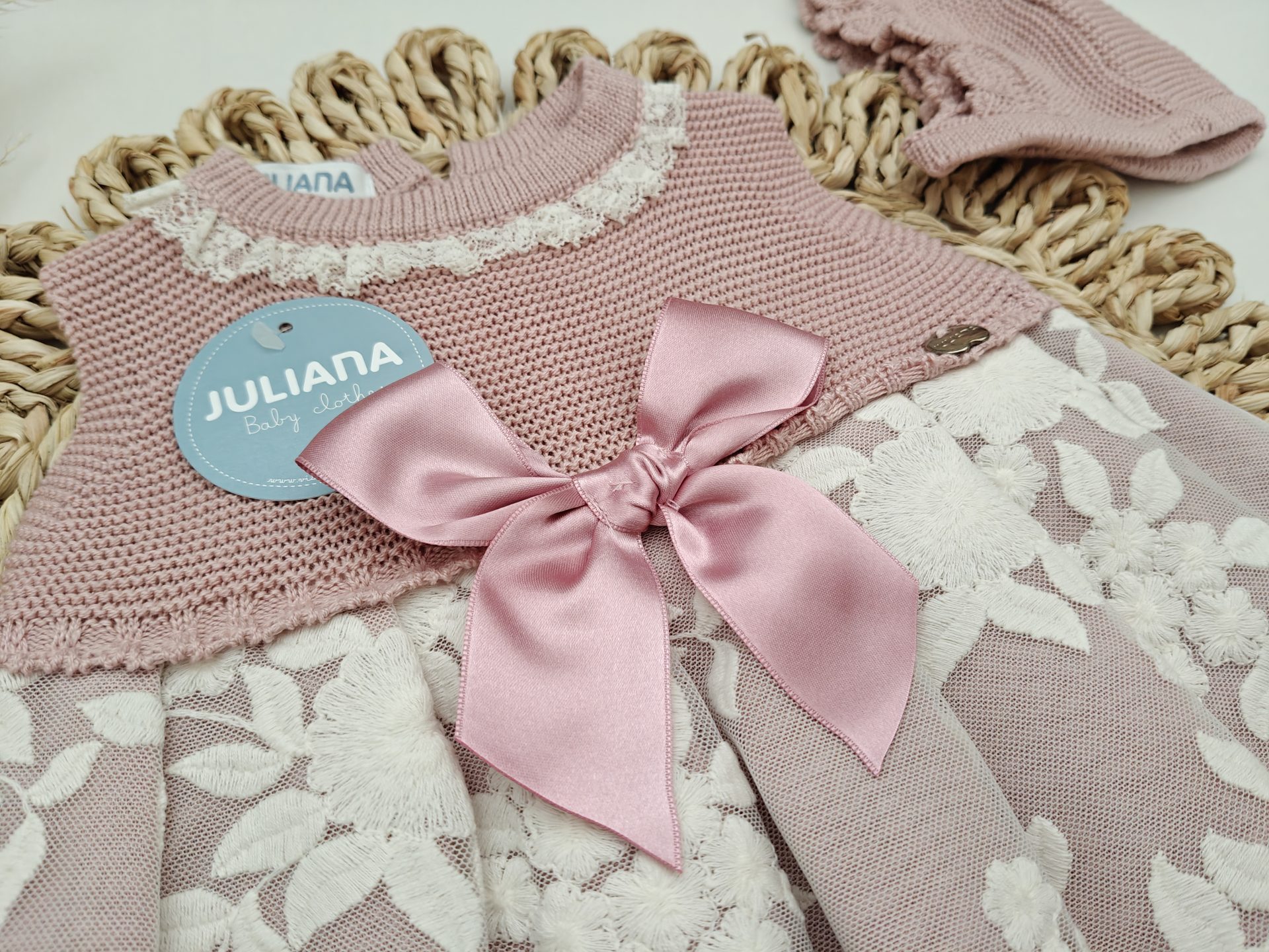 El tallaje de Juliana no es muy amplio, especialmente las tallas comprendidas entre la 0 y 12 meses, la talla 0 se recomienda para prematuros y la 1 para recién nacidos.